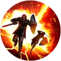 [Passive Effect] At the start of this Champion's turn, places a [Perfect Veil] buff and a 50% [Increase ACC] buff on them for 2 turns. Also, this Champion receives 3% less damage for every 750 ATK they have (stacks up to 30%). [Active Effect] At the end of this Champion's turn, revive a random ally with 50% HP and 50% Turn Meter. Also places a [Perfect Veil] buff on the revived ally for 2 turns.